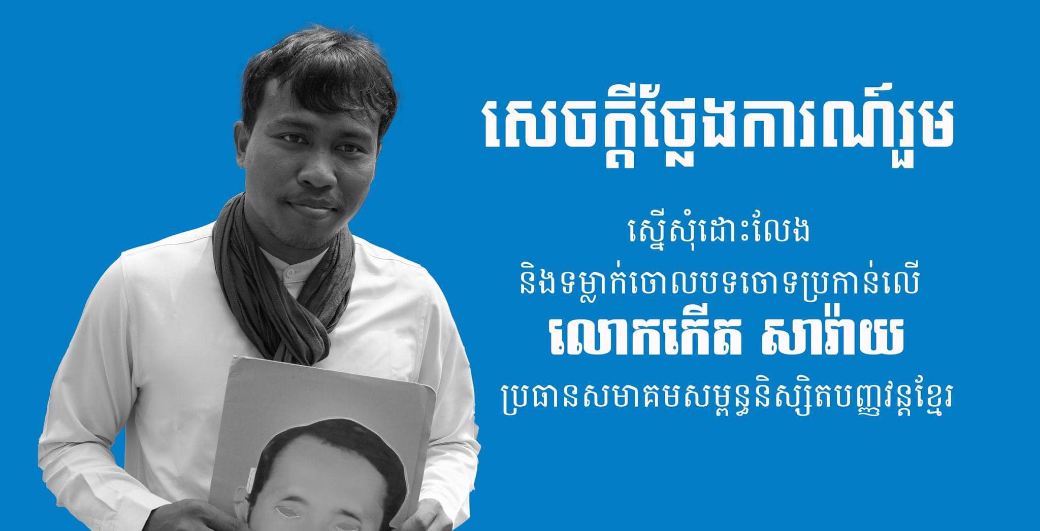 We, the youth, local communities, unions, associations, and local civil society organisations call on the Phnom Penh Capital Court to drop all charges and free human rights and environmental defender Mr. Koet Saray immediately and without any conditions, and to open the space for freedom of expression to all Cambodians who work for social justice.