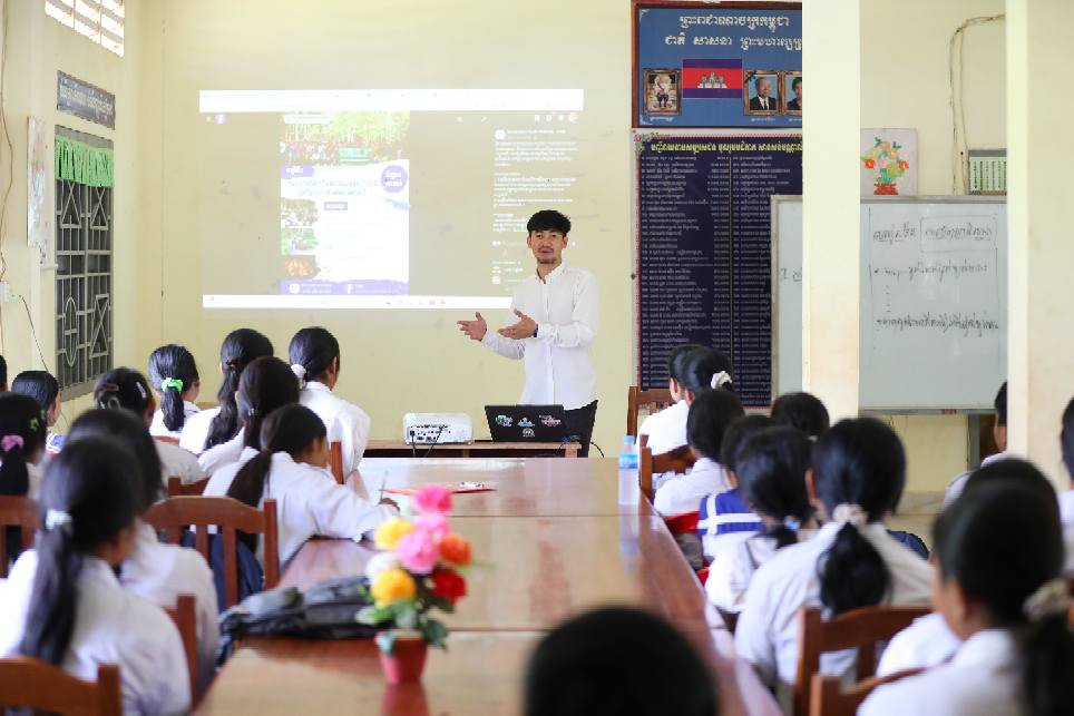 On July 5, 2025, the Cambodian Youth Network Association, in collaboration with Sandan High School in Sandan District, Kampong Thom Province, organized a sharing session on “Clean Environment and Climate Change.”