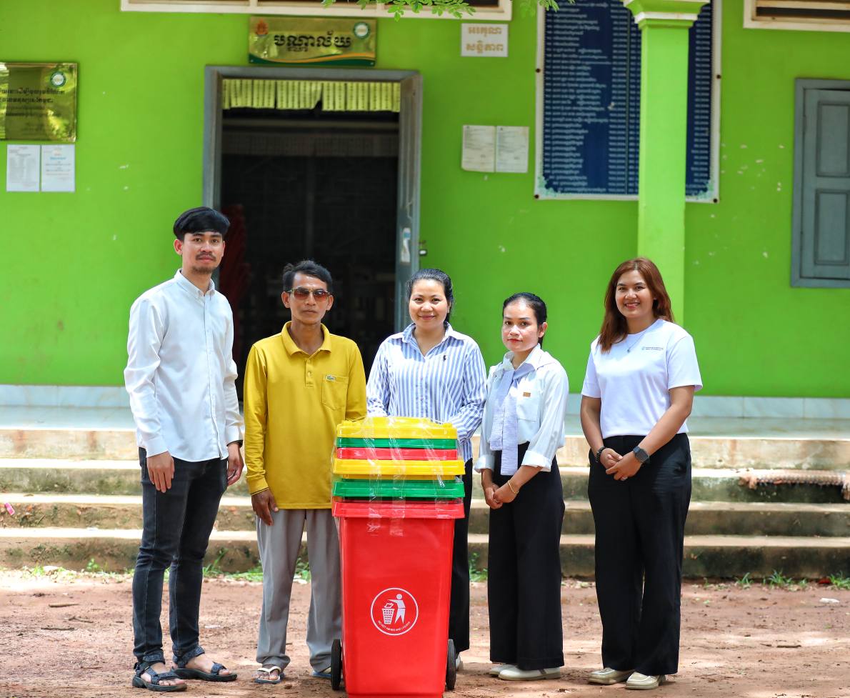 Cambodian Youth Network Association, in collaboration with Sandan High School in Sandan District, Kampong Thom Province, organized a sharing session on “Clean Environment and Climate Change”. The program was held to share knowledge about the importance of forests, environmental protection, reducing the use of plastic bags, and to contribute to preventing global climate change. In addition to the sharing session, the Cambodian Youth Network Association also provided three trash cans to schools for daily use.
