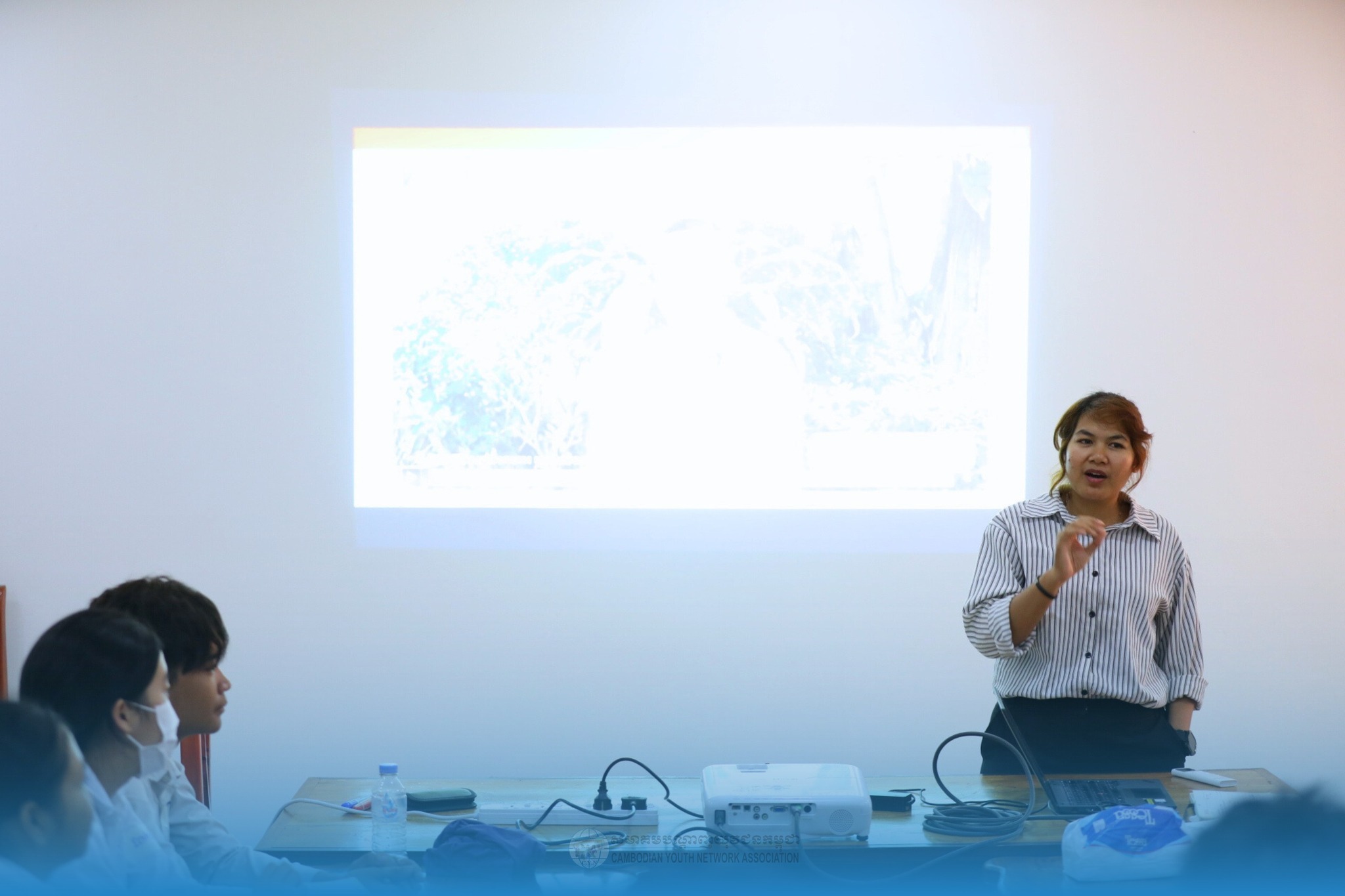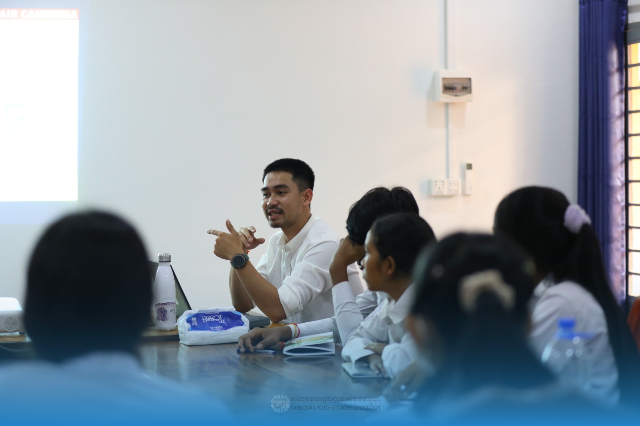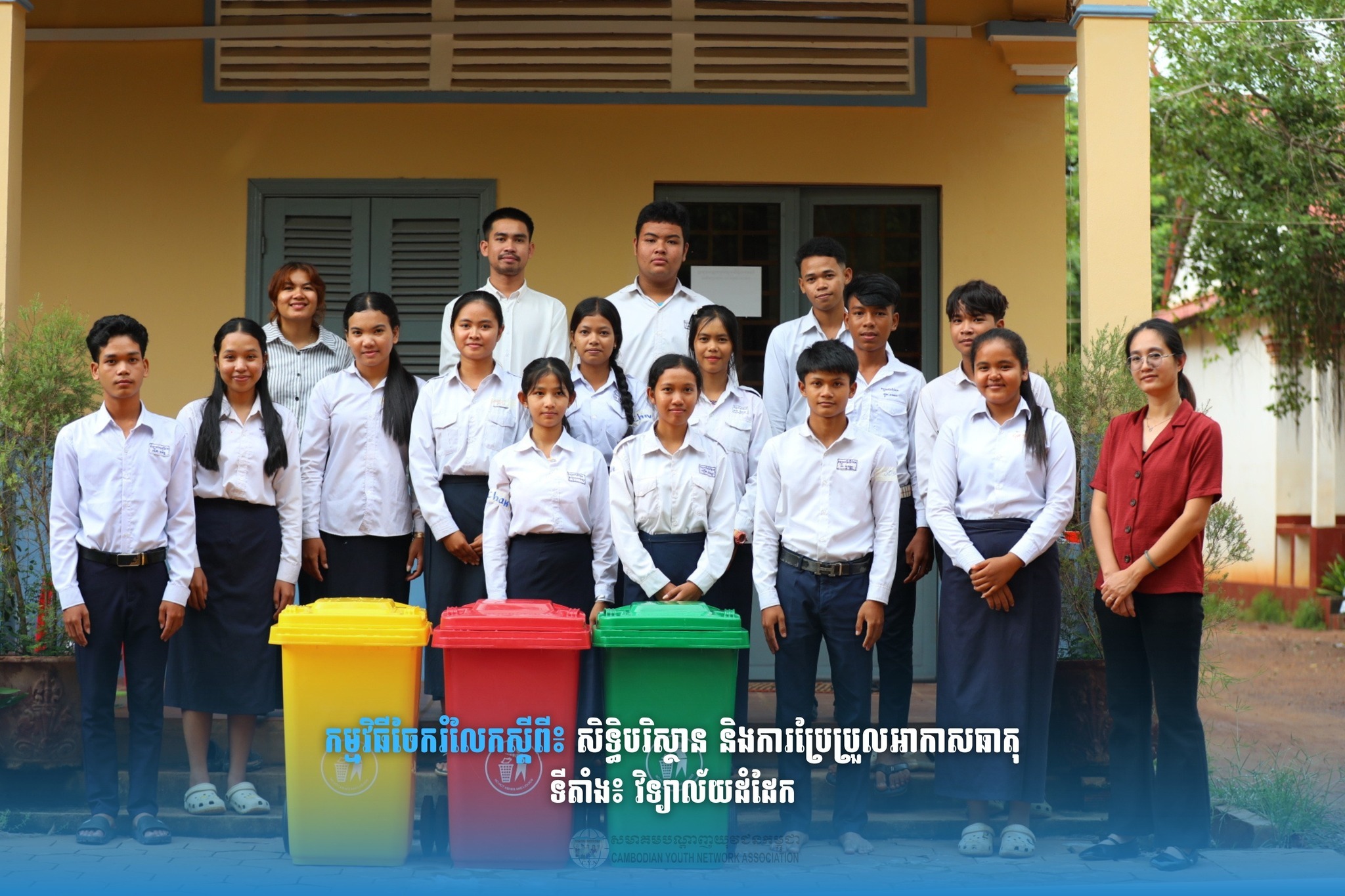 In addition to the sharing session, the Cambodian Youth Network Association also donated three trash bins to Domdek High School for daily use within the school.